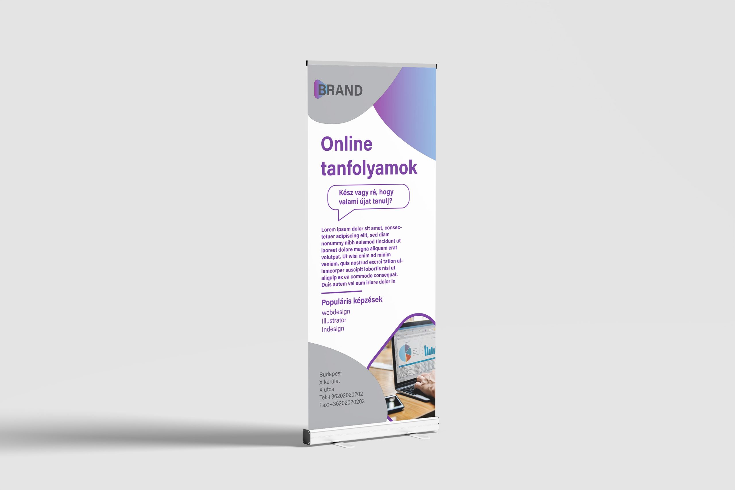 A rollup egy könnyen hordozható, nagyméretű, tekercses reklámhordozó, amelyet leggyakrabban kiállításokon, konferenciákon vagy üzletek bejáratánál használnak. A dizájn esetében a letisztult, távolról is jól olvasható üzenetre és a márkajelzésre kell fókuszálni.